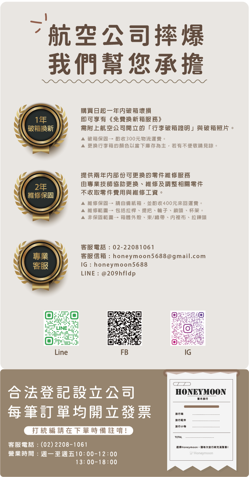 尺寸:20吋 (35.5 x 20.5 x 53.5 cm) / 可登機