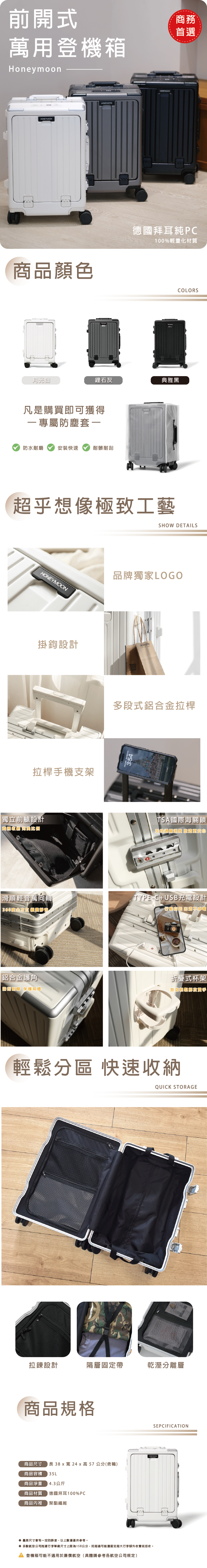20吋 Honeymoon 商務前開盒萬用登機箱(團)極致工藝|商務首選